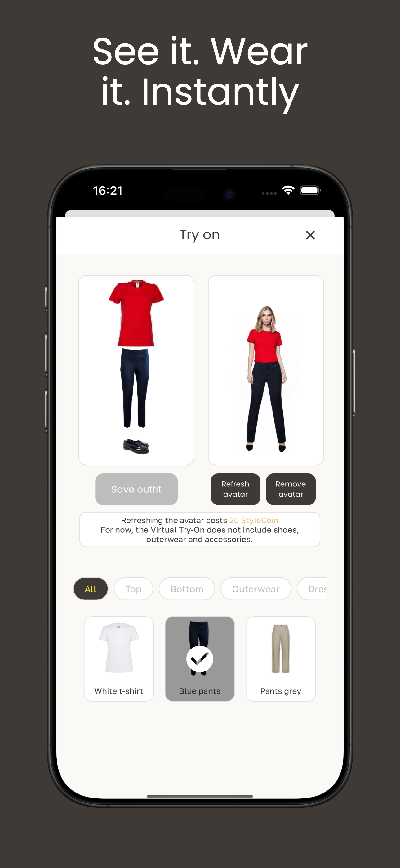 • Try looks on a virtual avatar with Virtual Try-On before you get dressed.