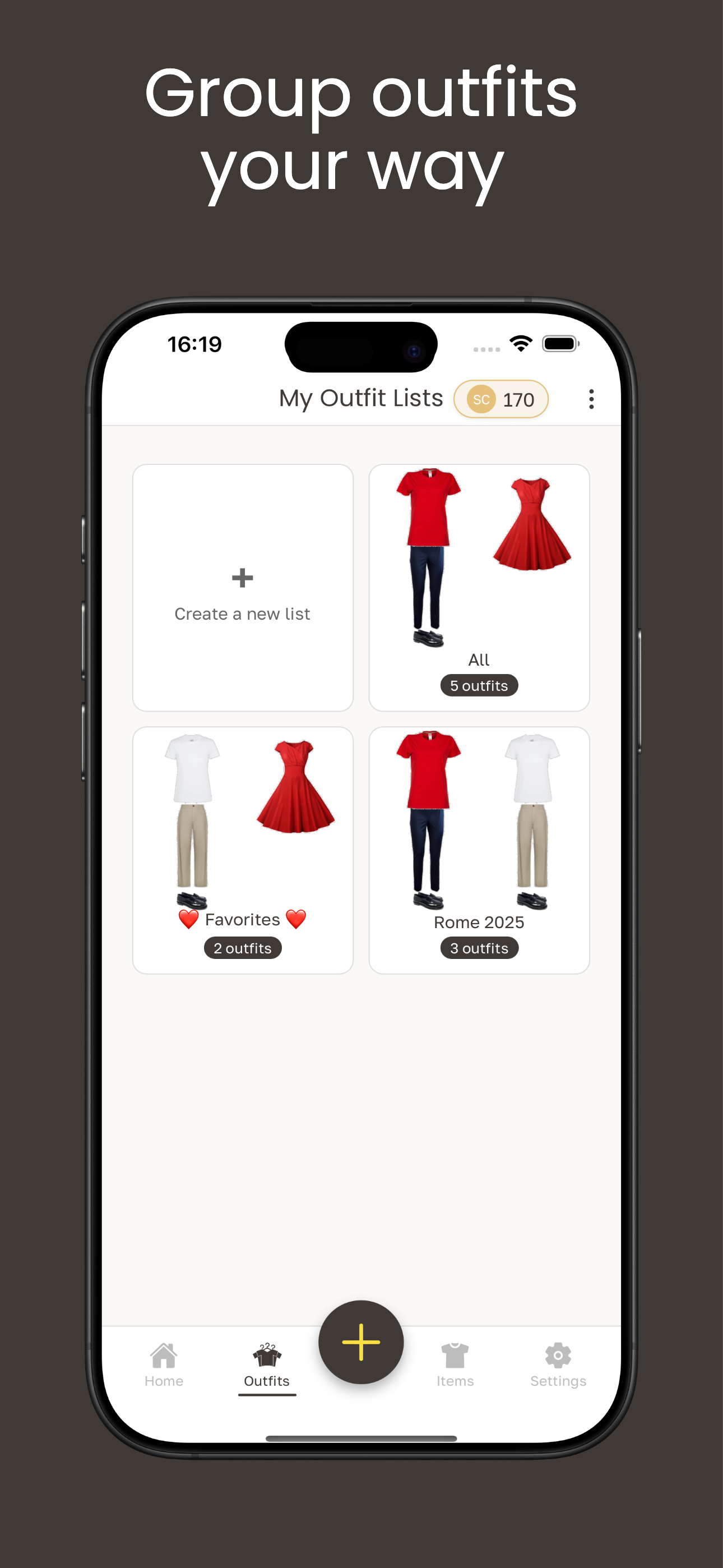 • Organize your closet into custom lists and collections like Summer, Office, Minimal, or Weekend.